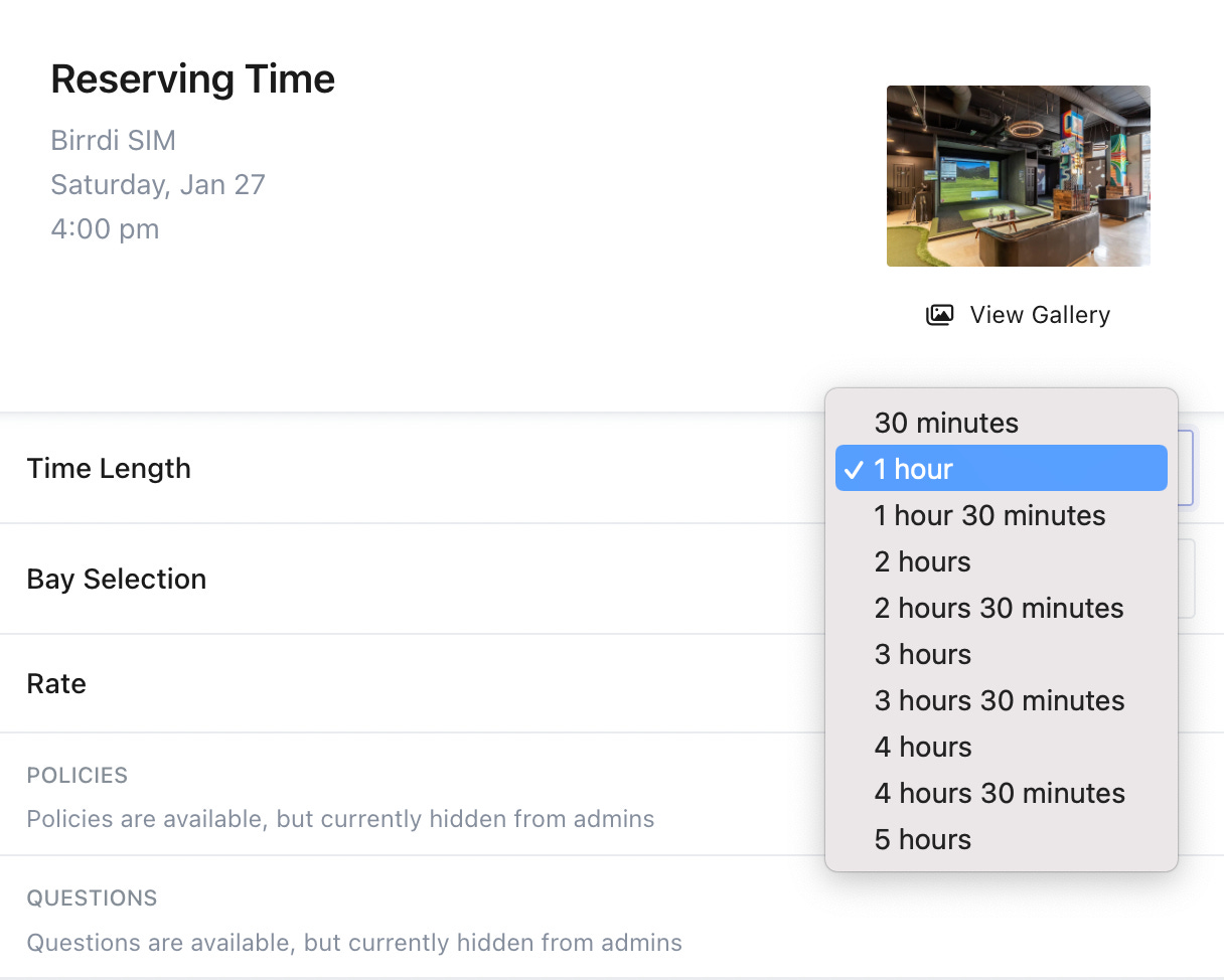 In this example, Birrdi SIM currently enforces a minimum reservation of 1 hour. However, admins now possess the capability to override this restriction and set reservations for as short as 30 minutes.